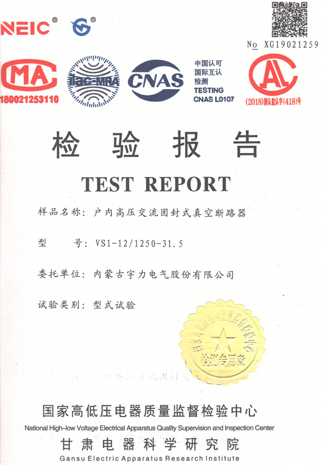VS1-12/1250-31.5固封式真空斷路器(檢驗報告)