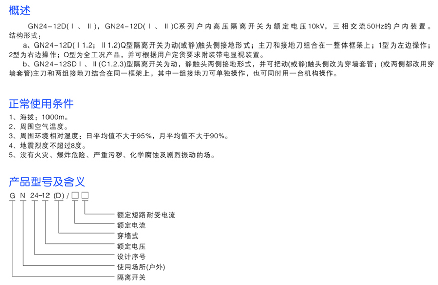 GN24-12D系列戶內(nèi)高壓隔離開關(guān)