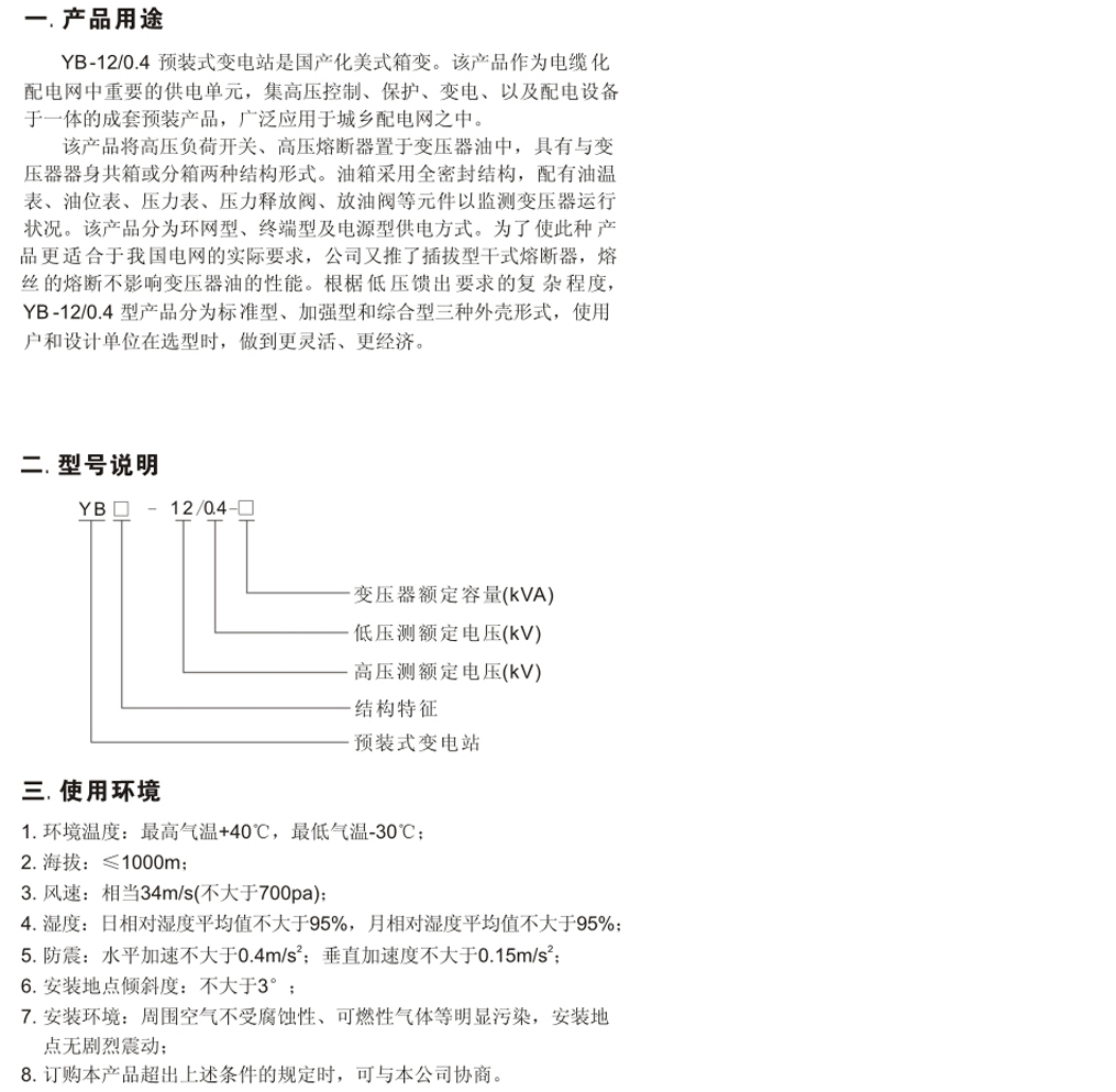 YB-12/0.4-口型戶外預計式變電站(美式)返回列表